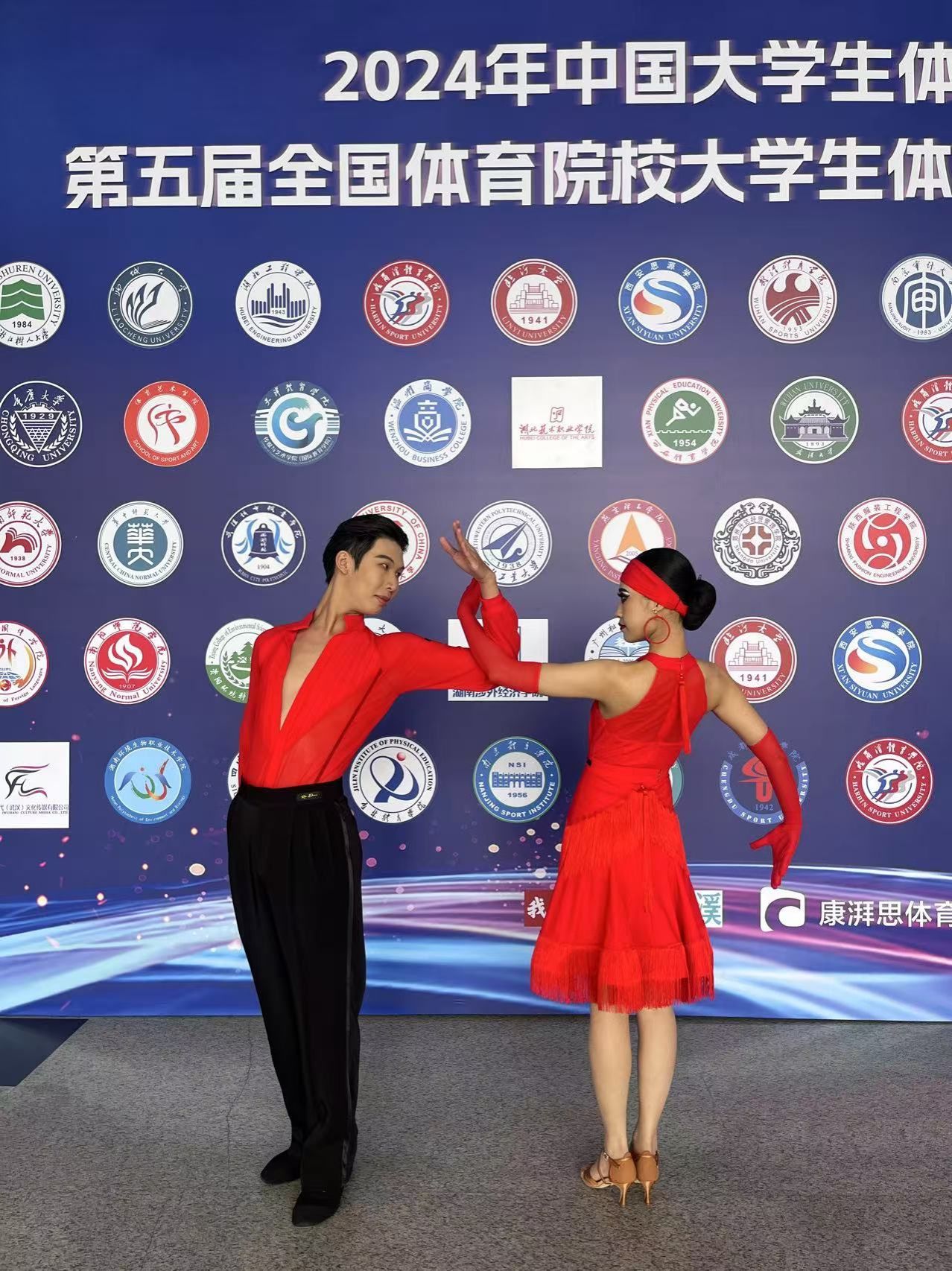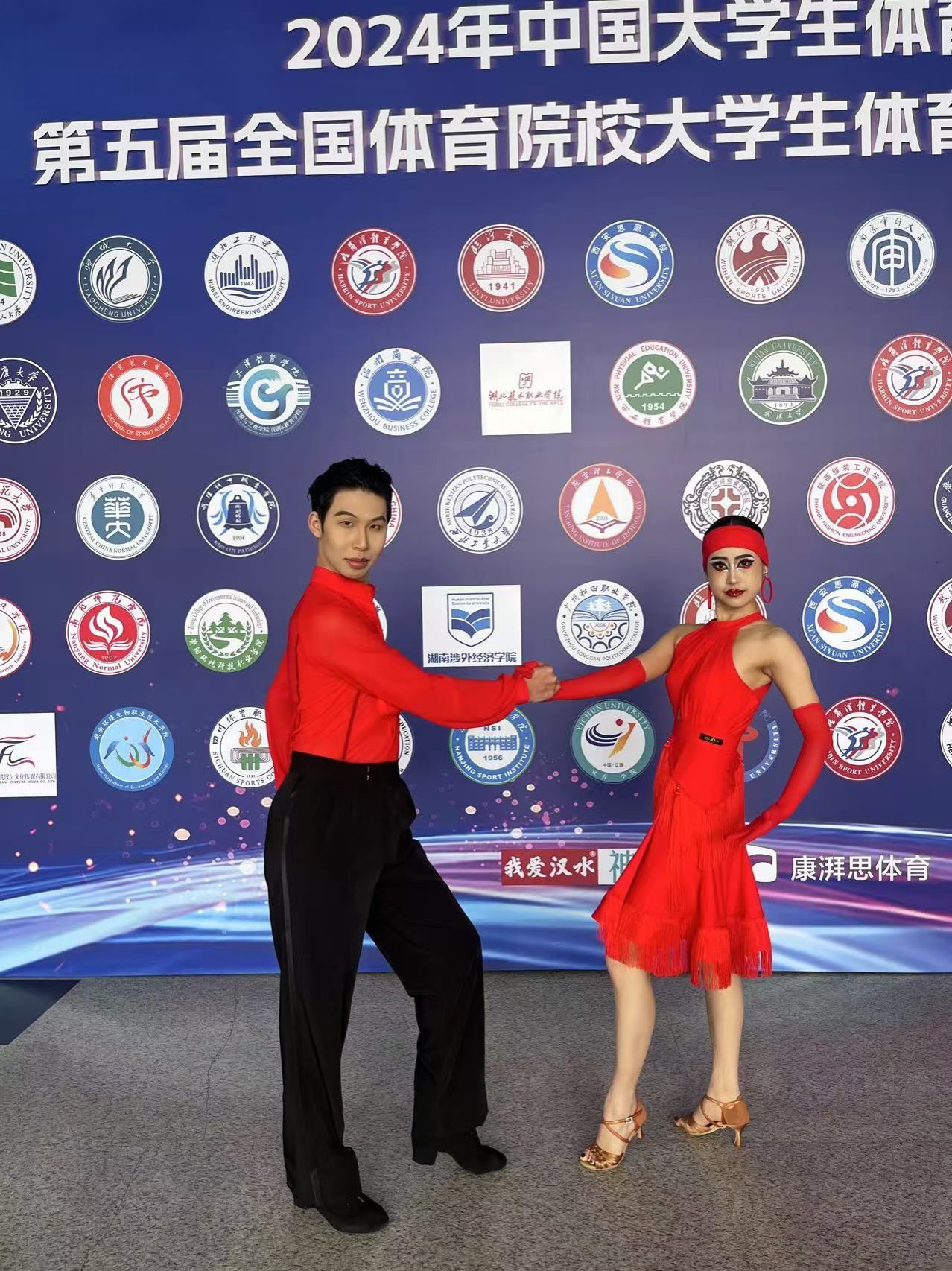 研究生的风采。谢琳同学在回忆本次比赛时谈到:“能够代表学校去参加这次比赛,我感到既兴奋又紧张。在训练初期,面对复杂的舞步和节奏,我感受到了巨大压力。但在无数次的重复练习和纠正动作中,我学会了坚持与不放弃。每当掌握了一个新的动作,或是与舞伴的配合更加默契时,那种成就感和喜悦都是难以言表的。”