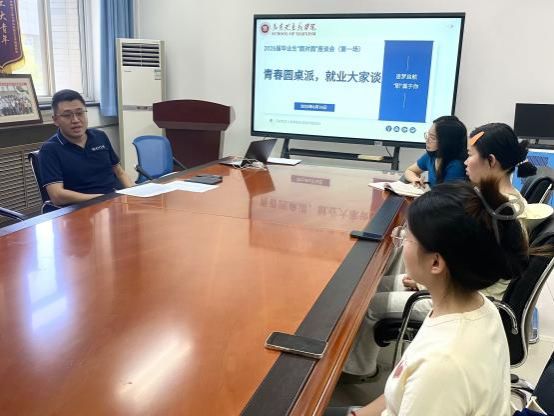 座谈会上,学生们围绕职业发展规划、就业方向选择畅所欲言,并表达了自身当前所面临的求职困境,包含缺乏对就业市场和岗位需求的深度认知,自身实践经历不足,就业地域不清晰等问题。针对学生们提出的问题,老师们与学生深入交流,提供了具有针对性的指导建议。耿云辉书记结合自己的求职经历,强调要树立正确的就业观,提前做好职业规划,合理设定就业目标,拓宽就业视野,提醒同学们在求职过程中保持积极乐观的心态。王换老师鼓励同学们要结合自身专业优势与兴趣确定就业方向,在兼顾学习的同时,多搜集招聘信息并投递简历,在尝试中不断提升就业能力。