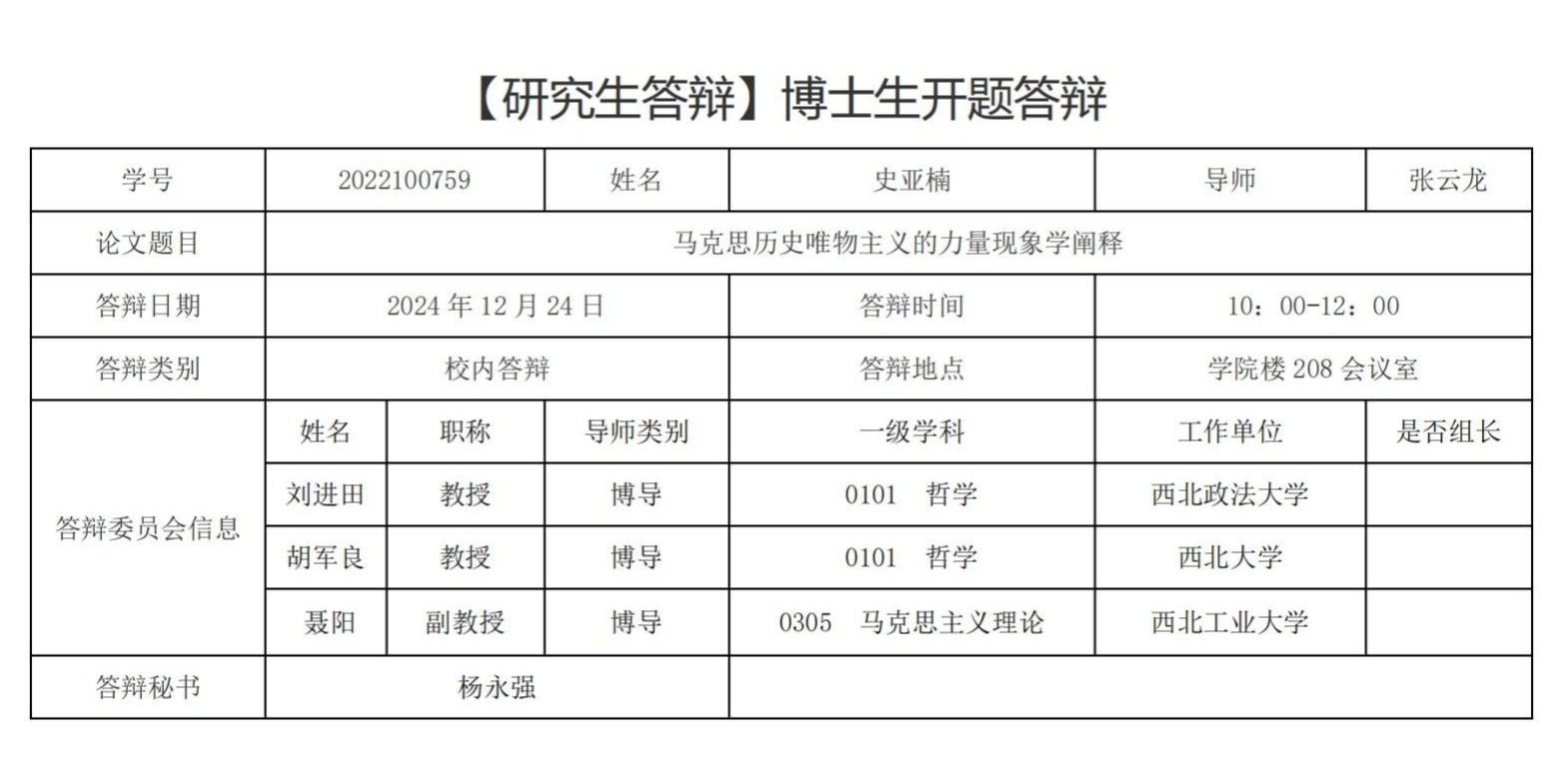博士生开题答辩