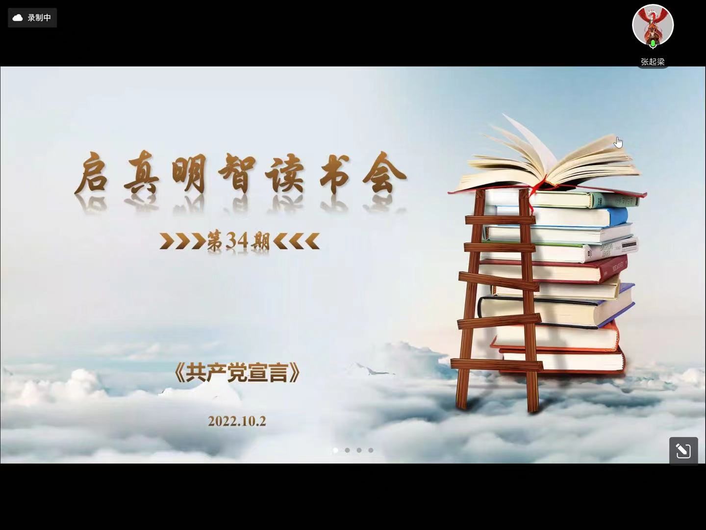 2022年10月2日,国产直播 国产直播 第34期“启真明智”读书会通过腾讯会议顺利举行。本次读书会由学院张起梁老师主持,丁社教老师、聂阳老师、杨冰郁老师作客云端与硕博同学们一起阅读马克思和恩格斯的经典著作,为《共产党宣言》著作的阅读形成了一个良好的开端。