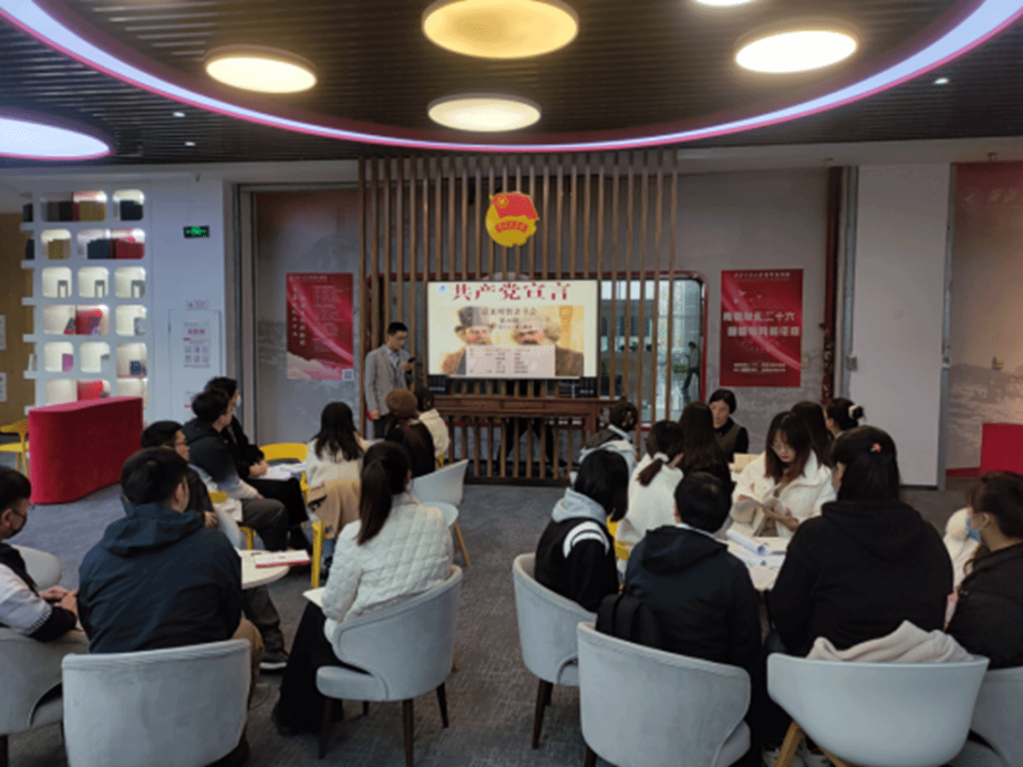 2022年11月18日,国产直播 国产直播 第36期“启真明智”读书会在学校长安校区图书馆一楼的学习书屋成功举办,此次主题为《共产党宣言》的重点解读。学院杨冰郁老师、聂阳老师、齐承水老师、张起梁老师与同学们一起线下读书会面,丁社教老师以线上方式参与了本次读书会。