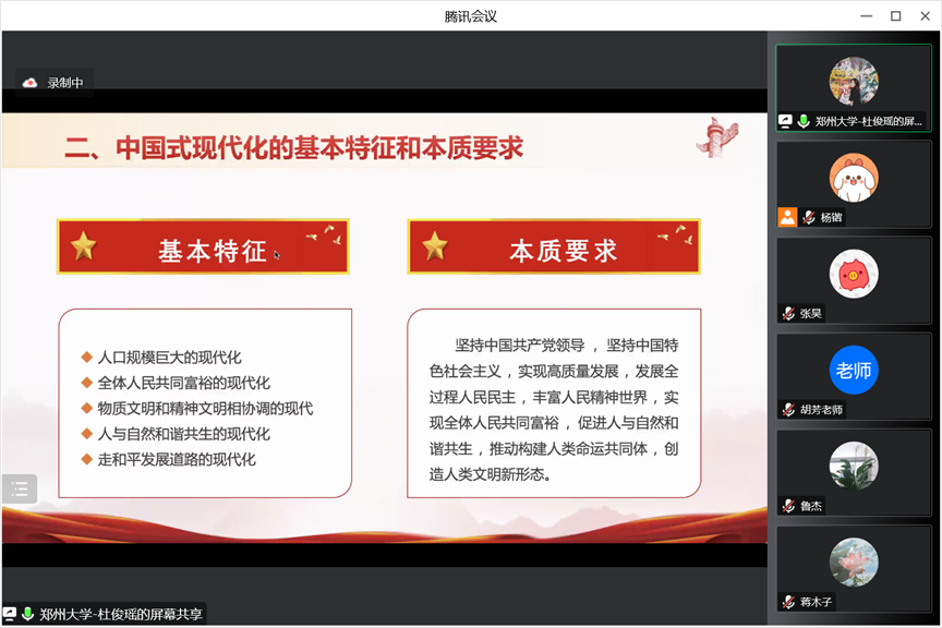 为全面学习贯彻党的二十大精神,推进习近平新时代中国特色社会主义思想进教材、进课堂、进头脑。20221029日,国产直播 国产直播 习近平新时代中国特色社会主义思想学习读书会第三十二期活动主题围绕《习近平在中国共产党第二十次全国代表大会上的报告》进行学习研讨。本次读书会由国产直播 思想政治教育系主任、博士生导师鲁杰教授发起,学院硕士生蒋木子主持,四川大学国产直播 特聘研究员、博士生导师胡芳作为对话教师应邀参加。