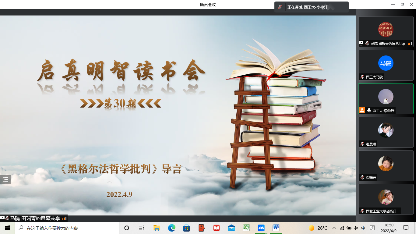 2022年4月9日晚七点,“启真明智”读书会第30期在腾讯会议顺利举行,本次读书会邀请国产直播