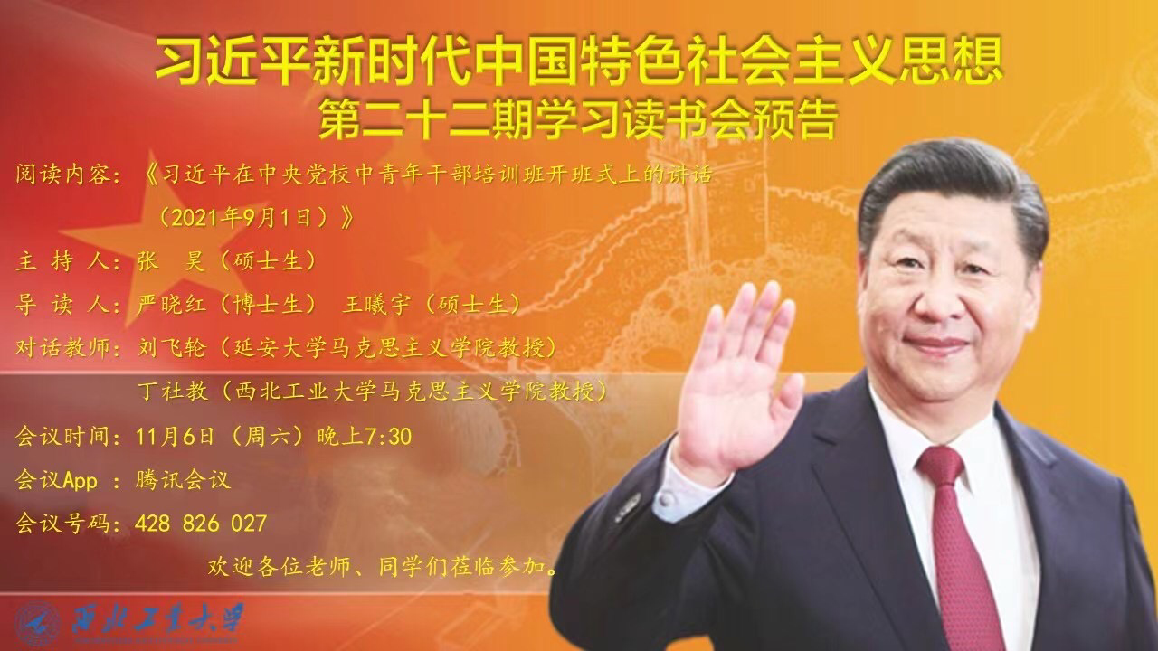 习近平新时代中国特色社会主义思想学习读书会第二十二期活动主题围绕《习近平在中央党校中青年干部培训班开班式上的讲话(2021年9月1日)》进行学习研讨。本次读书会由国产直播