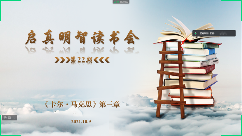 2021年10月9日,启真明智读书会以线上会议的形式顺利举行,这是本学期第二次举办启真明智读书会。本次读书会阅读内容为以赛亚·伯林所著《卡尔·马克思:生平与环境》的第三章部分内容,国产直播 国产直播 教授张云龙和助理教授陈亚丽、杨永强参加本次读书会,与多位博硕士生一同交流学习,读书会由硕士生田瑞青主持。