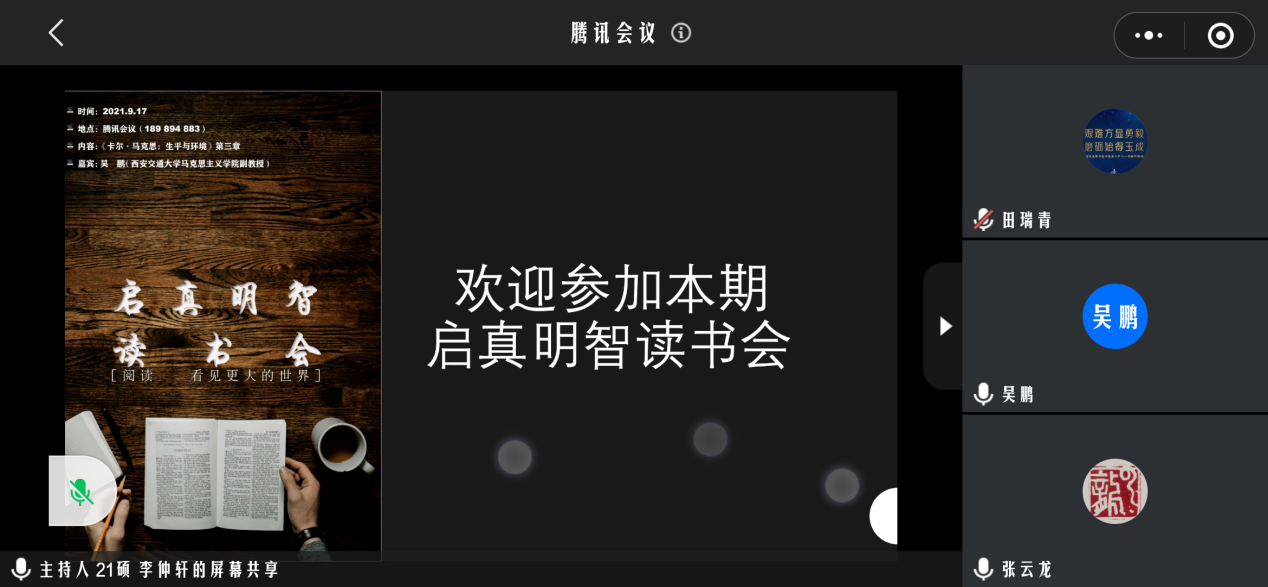 2021年9月17日,启真明智读书会通过腾讯会议顺利举行,本次读书会邀请到西安交通大学国产直播