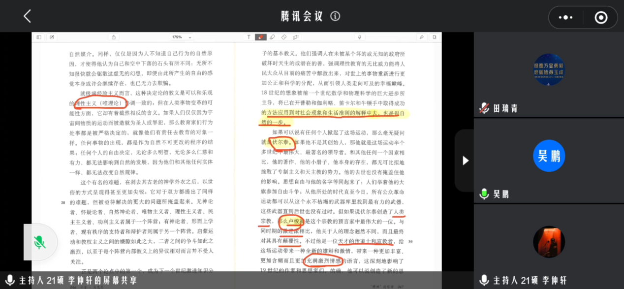 助理教授吴鹏与同学们一同阅读经典,国产直播