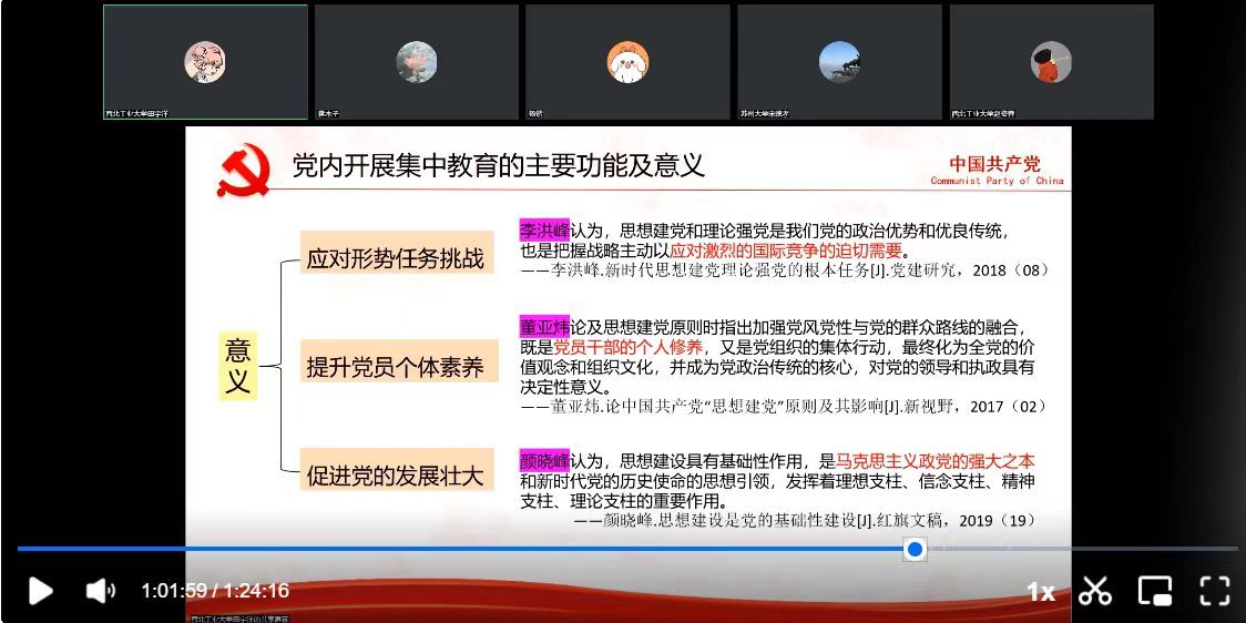 习近平新时代中国特色社会主义思想学习读书会第三十六期活动主题围绕《习近平在学习贯彻习近平新时代中国特色社会主义思想主题教育工作会议上的讲话》进行学习研讨。本次读书会由学院思想政治教育系主任、博士生导师鲁杰教授发起,学院硕士生杨锴主持,苏州大学国产直播