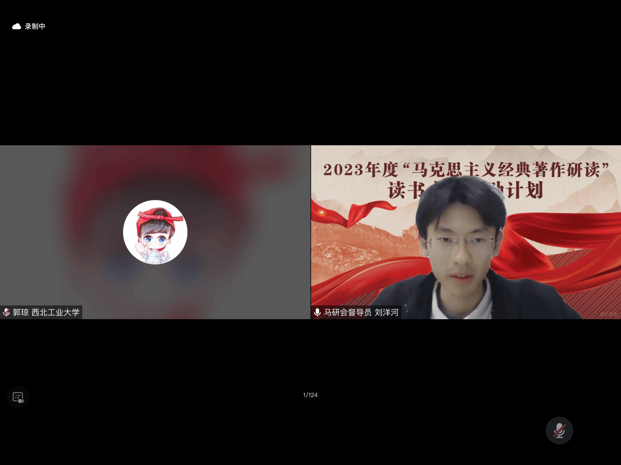 导读内容与点评结束后,马研会督导员刘洋河同学对本次读书会进行督导与指导,他提出,本次读书会的内容质量非常高,同学导读内容详实,老师点评专业精准,他在本次读书会中受益匪浅,有助于强化自身学术研究与理论基础。最后,他对读书会中期检查工作做了介绍。