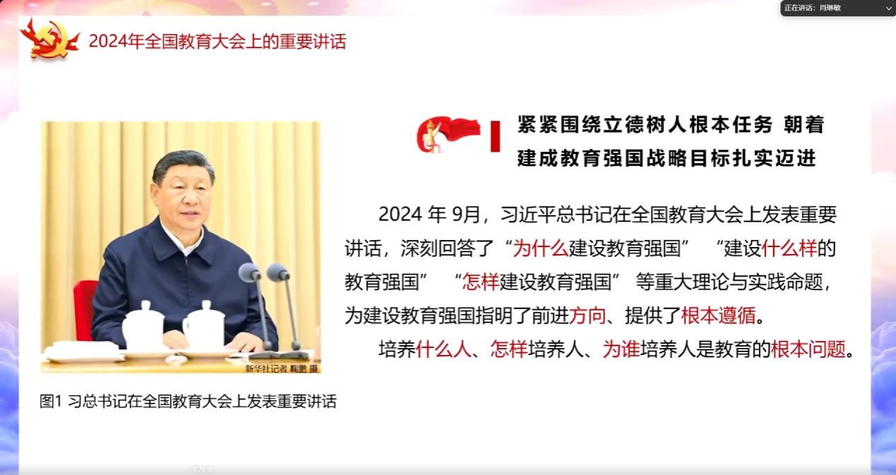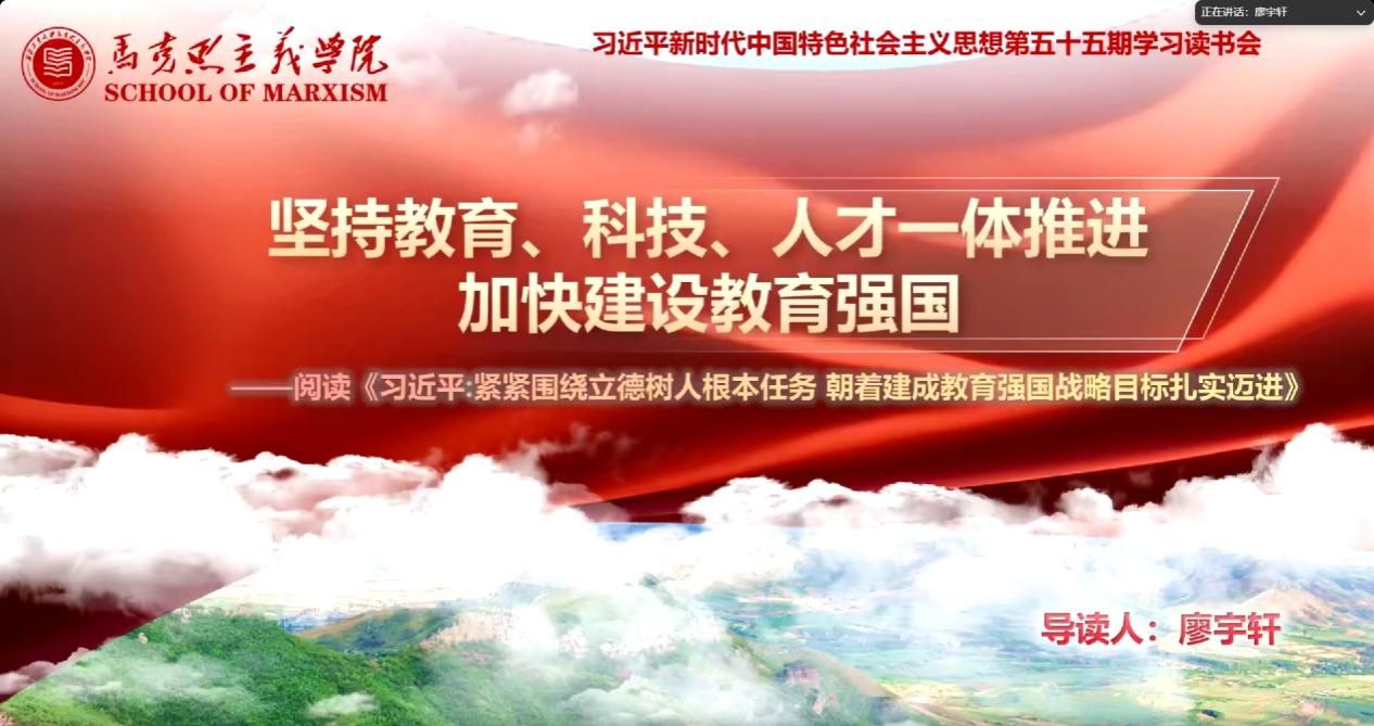 2025年3月29日,中国高等教育学会马克思主义研究分会2024年度“马克思主义经典著作研读”资助计划支持小组——国产直播 国产直播 习近平新时代中国特色社会主义思想学习读书小组第五十五期活动以《习近平:紧紧围绕立德树人根本任务 朝着建成教育强国战略目标扎实迈进》为主题进行学习研讨。本次读书会由国产直播 鲁杰思政课工作室主办,特别邀请了兰州大学国产直播 李东坡教授作为对话教师,国产直播 国产直播 博士生罗含樱同学担任本次读书会主持人,中国高等教育学会马克思主义研究分会督导组成员尉迟庆文同学和白亚飞同学共同参加,通过线上交流与线下讨论相结合的形式,为师生们搭建了一个思想交流、智慧碰撞的互动学习平台。