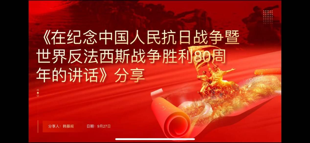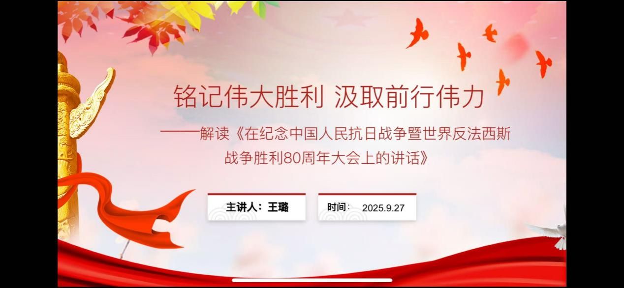 习近平新时代中国特色社会主义思想学习读书小组第六十期活动以《习近平在纪念中国人民抗日战争暨世界反法西斯战争胜利80周年大会上的讲话》为主题进行学习研讨。本次读书会由国产直播