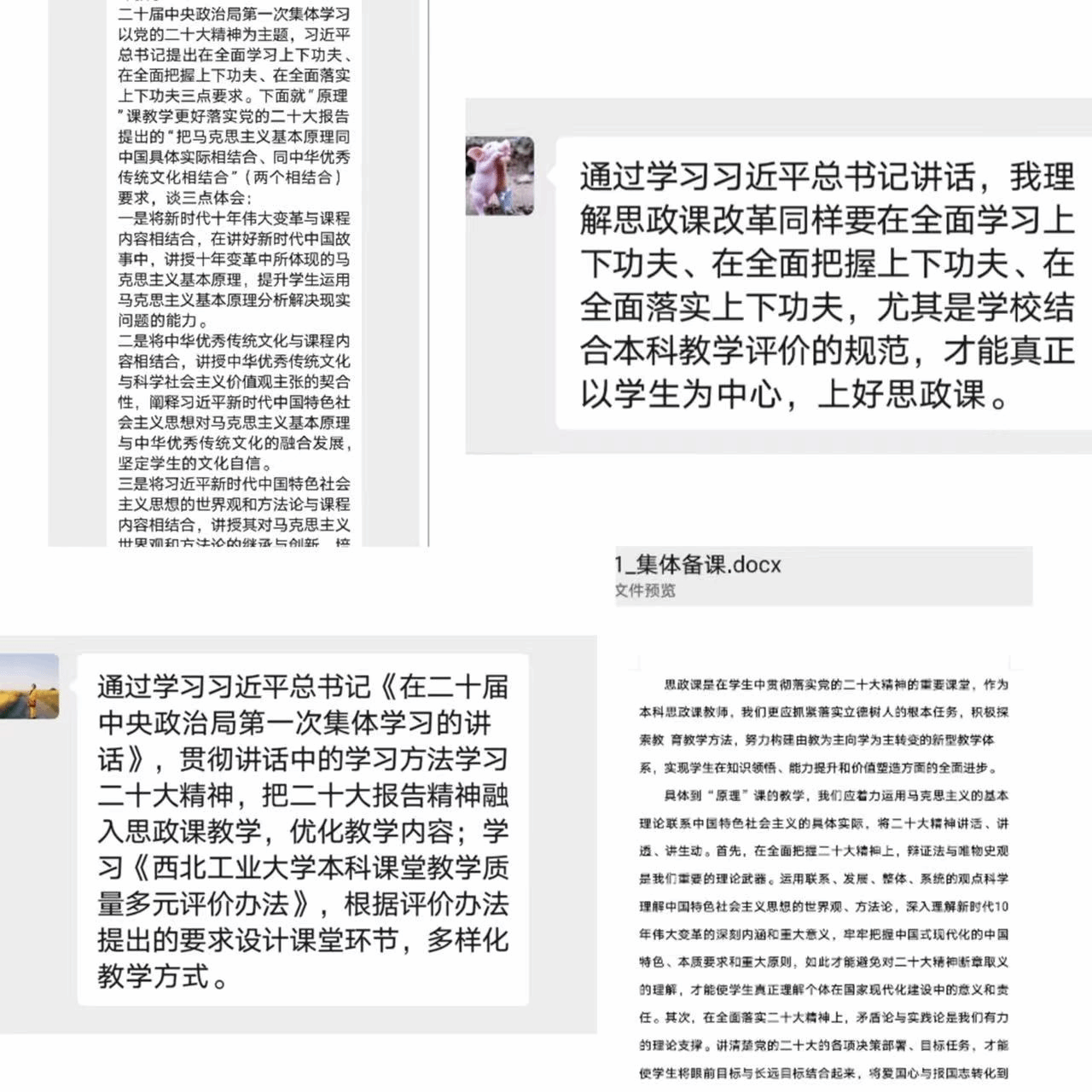 马克思主义基本原理系备课活动采取“自主学习+书面呈现”的方式开展。各位老师重点学习了习近平总书记在二十届中央政治局第一次集体学习时的讲话,以及《国产直播