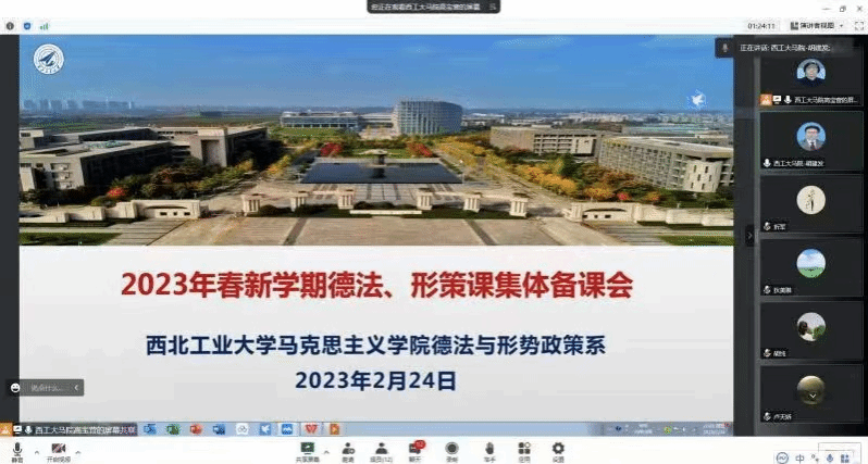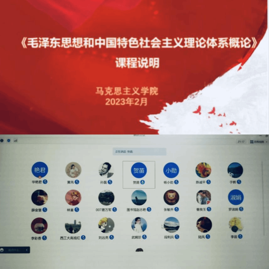 《毛泽东思想和中国特色社会主义理论体系概论》教学团队于2月23日晚组织开展了新学期首次集体备课,马克思主义中国化研究系教学主任华艳君副教授主持本次会议,课程团队专兼职教师共28人参加会议。国产直播 副院长贺苗参加了本次备课会,并传达了“开学第一课”的有关会议精神。老师们认真学习了会议精神并展开深入交流与讨论,大家纷纷表示要认真学习贯彻习近平总书记提出的“八个相统一”教学要求,落实立德树人根本任务,做好国产直播 新学期思政课教学和大思政课建设工作。