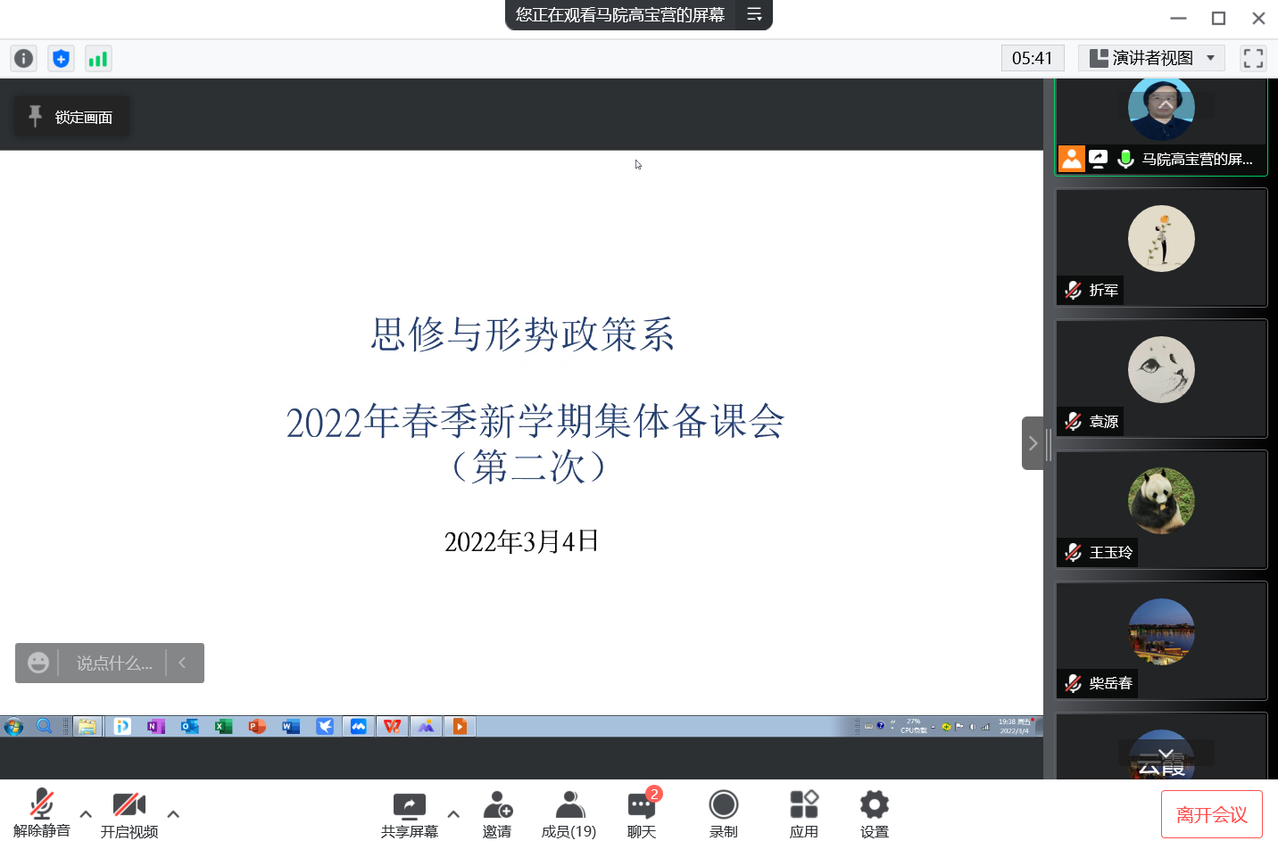 思修与形势政策系按照学院集体备课的要求,通过腾讯会议开展了新学期第二次集体备课会。会议由系主任高宝营老师主持,课程全体专兼职教师参加。