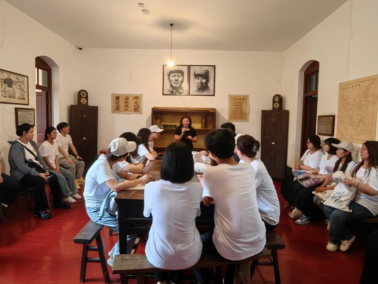 本次实践首日第一站,实践队来到八路军驻西安办事处旧址(其前身为红军驻西安联络处)进行参观学习,这里曾是中共中央在西北地区的重要联络站。从1936年至1946年间,中共中央在此设立了秘密的交通站、半公开的“红军联络站”和公开的“国民革命军第八路军驻陕办事处”。周恩来、朱德等老一辈革命家曾多次在此留驻并指导工作,为抗日战争的胜利作出了不可磨灭的贡献。在讲解员的带领下,实践队员仔细参观了旧址内的各个展厅,聆听了那些感人至深的历史故事。步入七贤庄,大家仿佛穿越了时空,回到了那个烽火连天的年代,在这个古朴典雅的四合院建筑里,每一处都透露出历史的沧桑感。