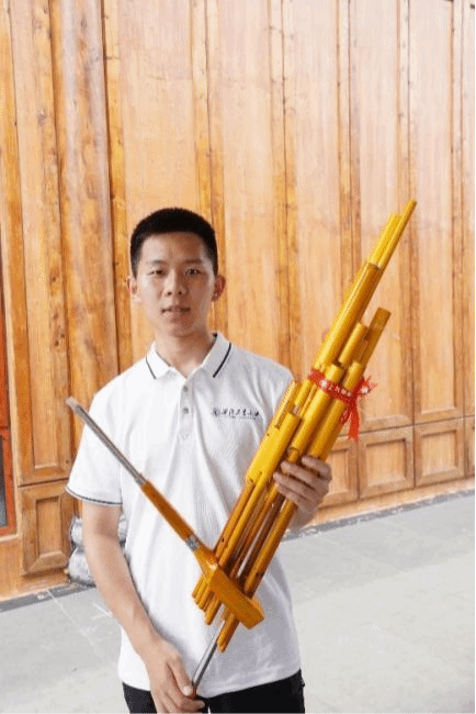 ▲图为实践队成员体验芦笙