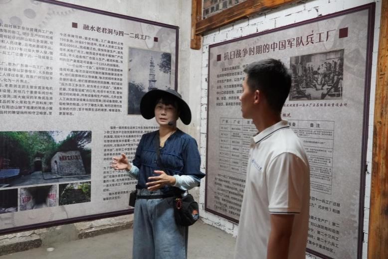 7月12日,实践队来到老君洞兵工厂历史展馆,追忆抗日战争以及“三线建设”的艰苦岁月。历史车轮滚滚向前,红色基因代代相传。聆听着讲解员的介绍,实践队员们仿佛回到了那个年代,这里的每一件展品、每一张照片,尽是见证军工艰苦而又载满荣光的历史。聆听着爱国奋斗、为国奉献的故事,实践队成员们真切体会到了那段历史的厚重与意义。一位队员感叹道:“看到这些历史遗迹和事迹,我更加清晰地认识到今天幸福生活的来之不易。”