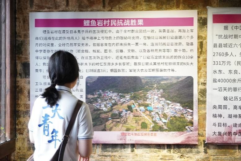 “红色是中国共产党、中华人民共和国最鲜亮的底色。”7月11日,实践队前往鲤鱼岩抗战纪念馆。鲤鱼岩抗战纪念馆以实物、图片和详实的文字资料,再现了鲤鱼岩群众团结抗战的英勇历史。纪念馆设置签名墙、宣誓台、打卡窗等版块,增强了游客们在参观学习中的仪式感、现场感、体验感。在讲解员的带领下,队员们参观了各个展厅,深刻感受到了革命先辈们艰苦卓绝的斗争精神。