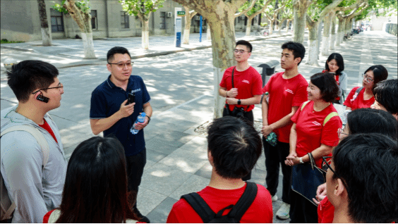 党委副书记耿云辉,带领同学们漫步校园,与实践队共同进行了一堂生动的“行走的思政课”。他以“传承红色基因 厚植蓝色情怀”为主题,追根溯源“脉源三支”的风雨历程,讲述从抗战烽火中的古路坝灯火到服从国家命令的华航西迁,再到振兴国防的军工添翼,学校与国家从站起来、富起来到强起来的同呼吸共命运。通过实地交流,实践队员们深切感受到,一代代西工大人将个人奋斗融入国家宏图,用无悔坚守传承“为国铸剑”的赤子之心,守护国家安全与发展。