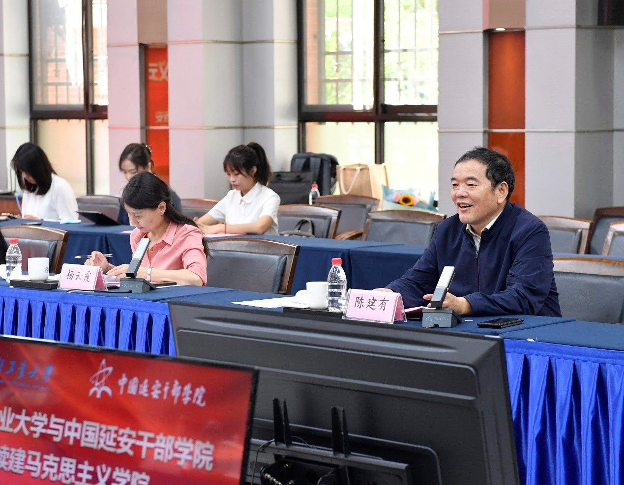 党委副书记陈建有与中国延安干部学院副院长赵耀宏签署续建协议书。双方将会继续牵手共进,同心续建,切实做好马院合作共建工作,创造新成果、新面貌、新格局。
