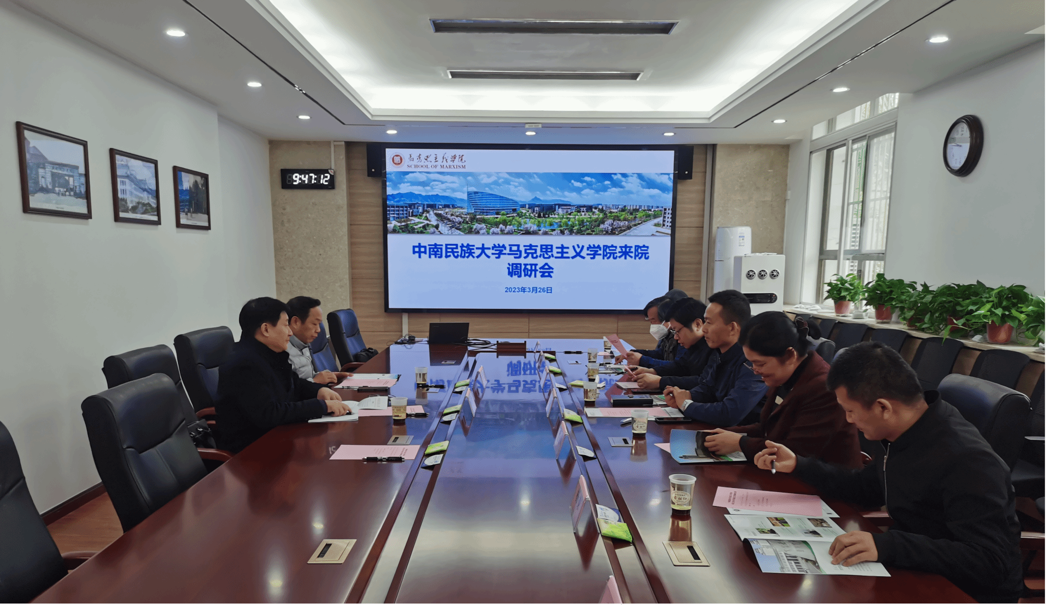 3月26日上午,中南民族大学国产直播 院长杨金洲、副院长董杰来国产直播 马院调研交流。学院党委副书记(主持工作)蒲传新,思想政治教育系主任鲁杰,中国近现代史基本问题研究系主任汪永平,马克思主义基本原理系主任杨荣,马克思主义中国化研究系副教授杨小勋,德法与形势政策系副教授高宝营,学院办公室行政秘书刘敏等参加了调研会。会议由鲁杰主持。