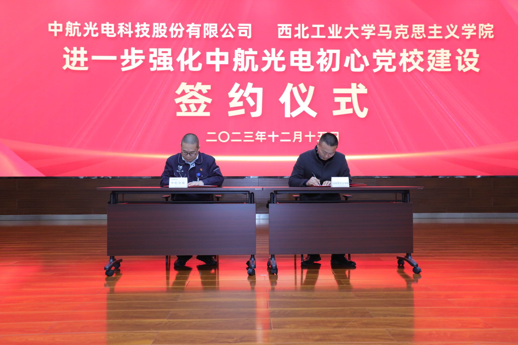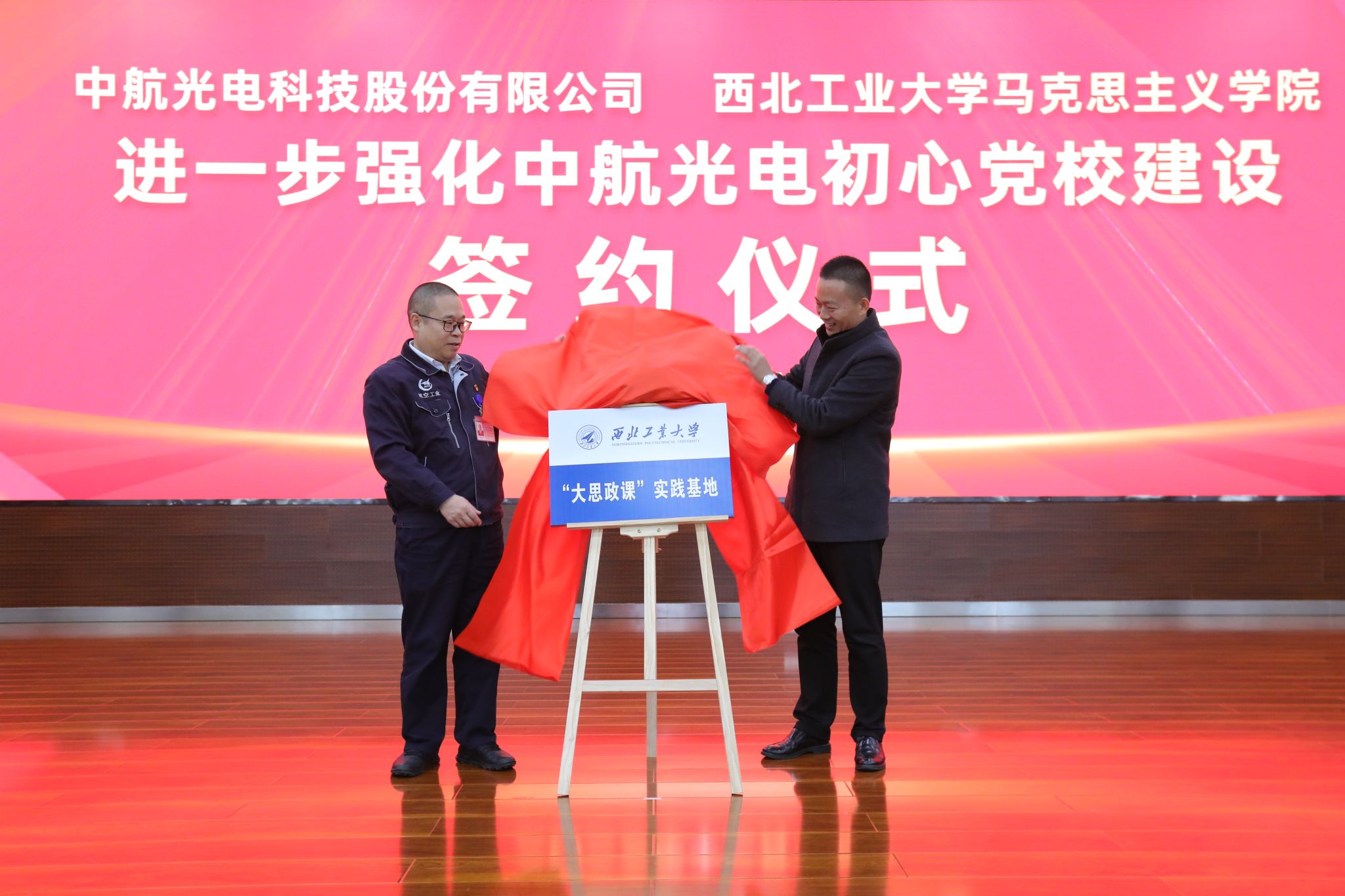 李森、蒲传新共同签署中航光电科技股份有限公司与国产直播 国产直播 进一步强化中航光电初心党校建设合作协议并为国产直播 “大思政课”实践基地揭牌。