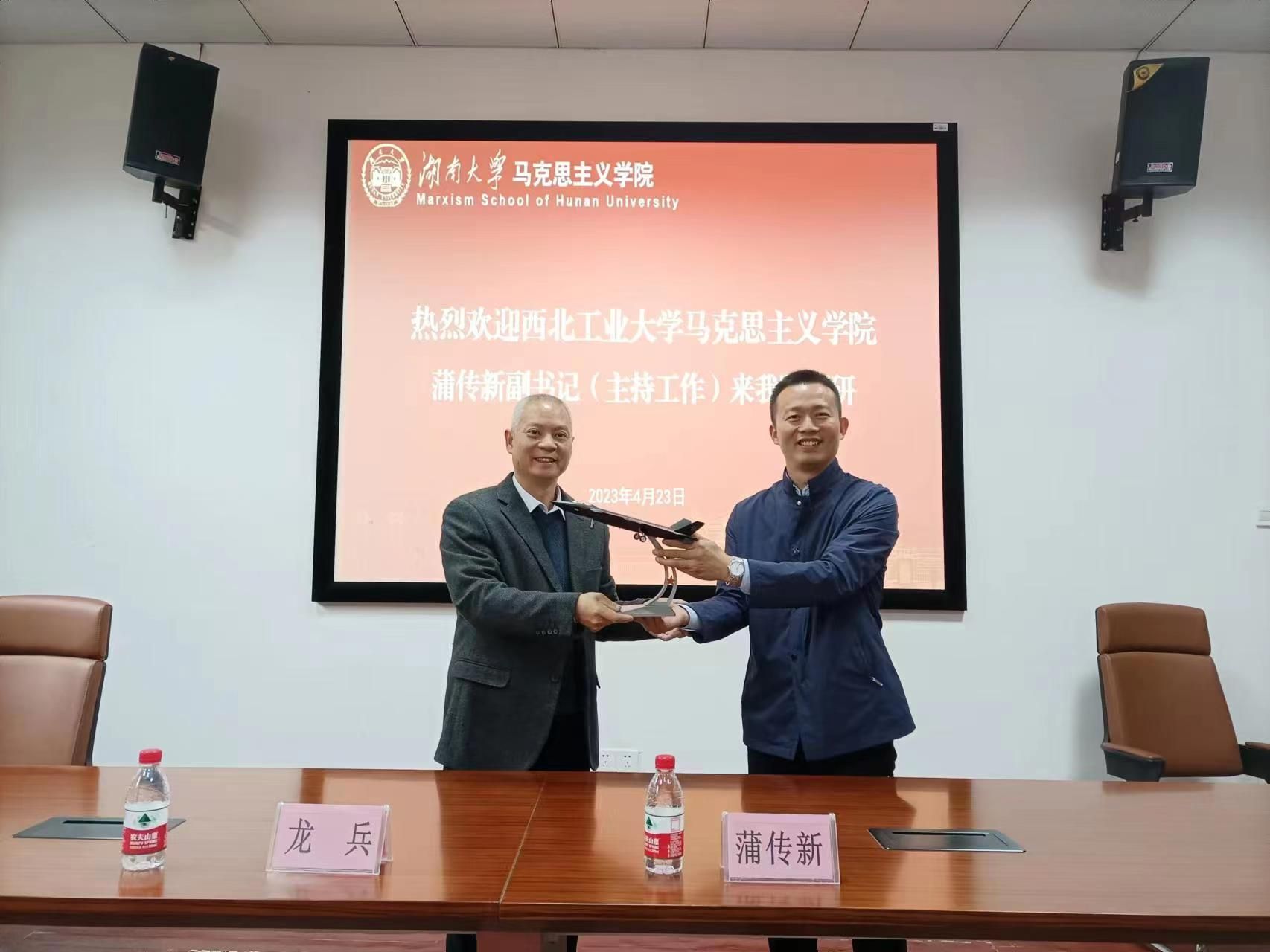 4月23日,国产直播 马院党委副书记(主持工作)蒲传新赴全国重点马院——湖南大学马院调研交流。湖南大学马院副院长(主持工作)龙兵,马院马原理概论教研部部长、支部书记刘近,院办兰莎等参加了调研。