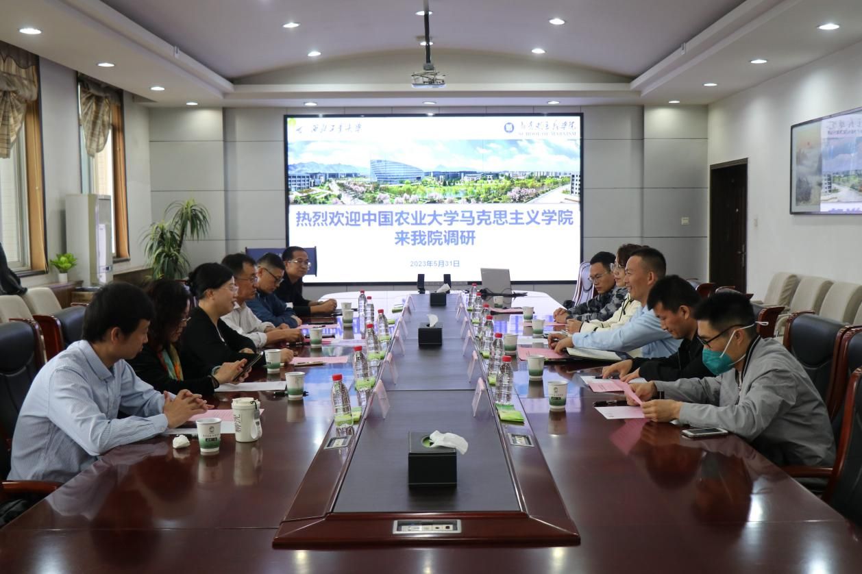 5月31日上午,中国农业大学国产直播 副院长王琳,马克思主义基本原理系主任、教授吕文林,副教授彭光华、刘彬、袁富民,讲师项荣建一行6人来国产直播 调研。学院党委副书记(主持工作)蒲传新,办公室主任郭雅楠,马克思主义基本原理系主任、副教授杨荣,副教授吴小安、聂阳,学院宣传统战秘书谢佳君参加了此次调研会。会议由蒲传新主持。