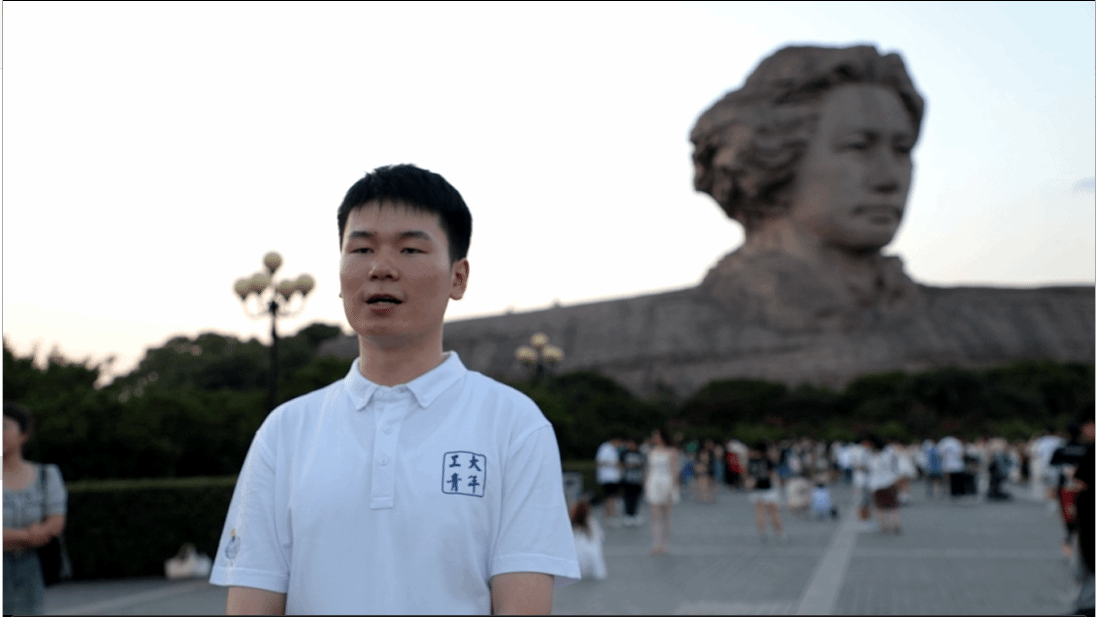 王枫同学在橘子洲头宣讲时感慨道:“时间堆积而成的橘子洲见证着历史,见证着这片土地曾承载着一代伟人在长沙开展创党、建党早期活动的奋斗足迹,橘子洲头那棵近200岁的老朴树,也曾见证着青年学子毛泽东、蔡和森等人指点江山、激扬文字的意气风发。”