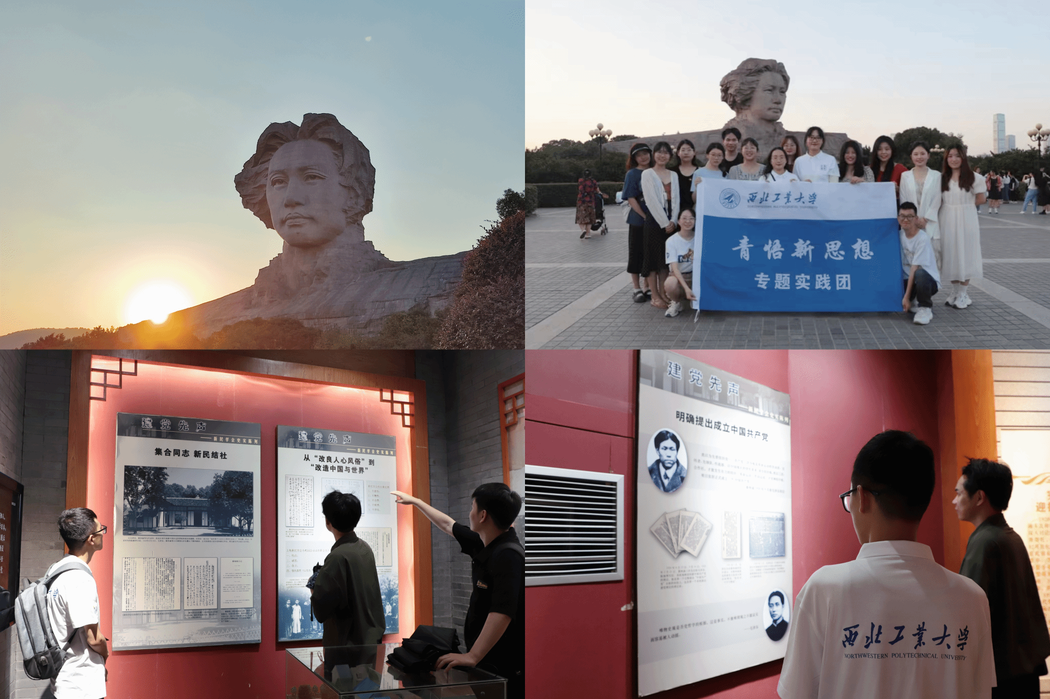 湖湘人士的集群式贡献在中国共产党创建时期表现得最为突出。深受湖湘文化浸润的一大批先进青年和仁人志士集群式地出现在中国共产党创建和早期活动的舞台上,为开天辟地的建党大业作出了重要贡献。在长沙成立的新民学会“发建党先声”,青年时代的毛泽东曾在橘子洲头发出“问苍茫大地,谁主沉浮”的历史叩问。7月10日,实践队通过探访新民学会旧址、橘子洲头,了解蔚为壮观的湖南建党群英和革命群众,于此传播新思想、心忧天下,为伟大建党精神的孕育与形成注入的湖湘力量。