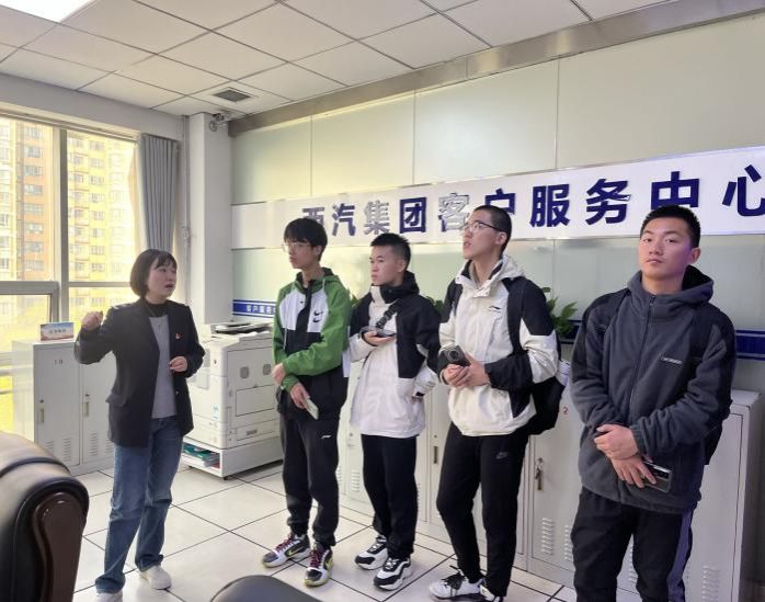 首先,西汽出租集团综合办崔灿灿老师带领同学们参观了西安市出租汽车集团有限公司中北分公司展览馆,给同学们详细地讲解了出租车行业的演进历程,从最初的简陋三轮车到如今的新能源汽车,生动呈现了行业变迁的历史;同时,也介绍了西汽集团对司机的规范以及考核、西汽集团在社会公益上的一系列举措、公司所肩负的责任与使命,为城市出行提供安全、便捷的服务。