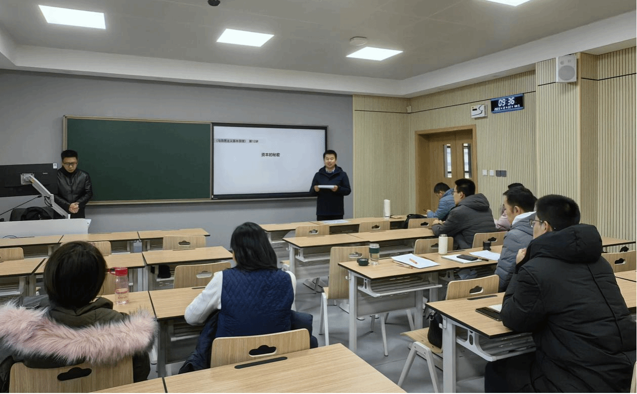 副院长田明教授进行《马克思主义基本原理》课程教学示范。本次活动由马克思主义基本原理系教学主任杨永强主持。