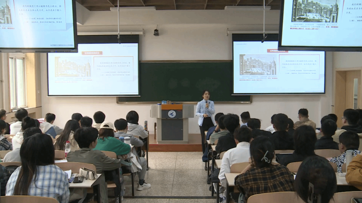 进阶式思政思维培养的最终目的在于价值引领。在教学过程中,张老师注重结合学生的学习生活实际与思想特点,将学生的专业背景、社会现实与思政课程内容和价值意蕴紧密融合,落脚到引导学生树立正确的世界观、人生观、价值观。在价值引导方法上,张老师注重运用冲突性叙事等教学方法,通过呈现价值冲突与矛盾点,引导学生进行深入思考与讨论,之后再结合现实矛盾、解决办法与国家政策进行价值澄清与引导,使学生在思辨中明辨是非、在讨论中达成共识。此外,张老师还注重将校史校情与“总师育人文化”等特色资源融入其中,通过讲述学校最新学科布局如何融入国家发展战略、学校各项管理制度如何运转,从身边事例出发激发学生的切身体会和认同感。